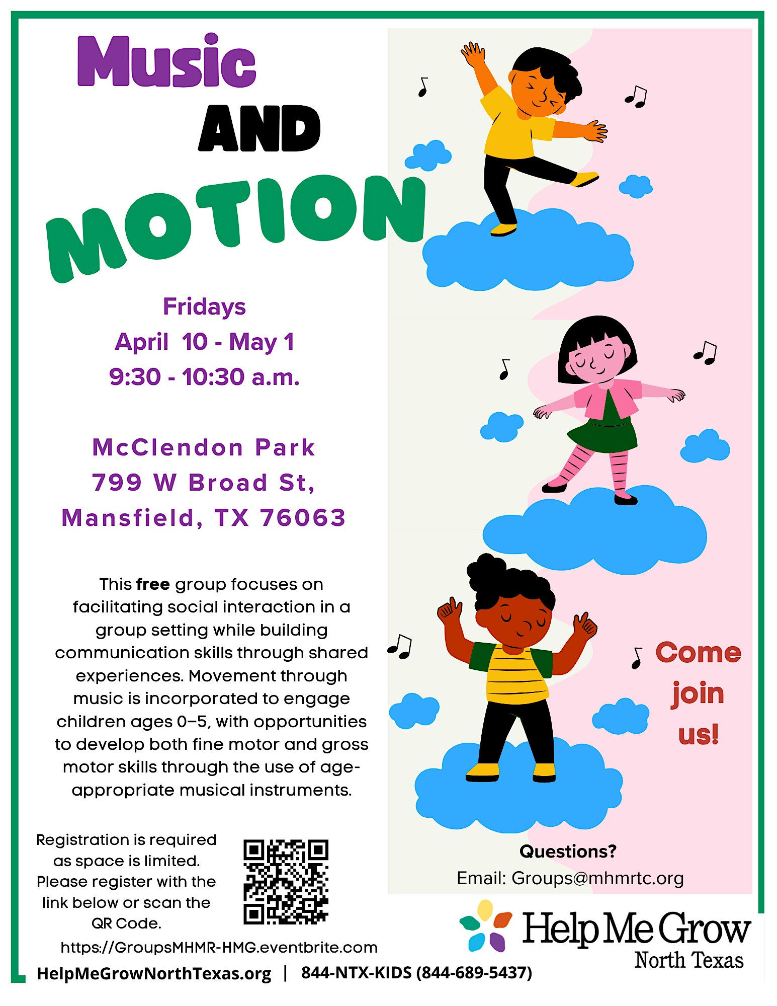 Face to Face Music and Motion – Mansfied April 24 @ 9:30 am - 10:30 am McClendon Park 799 West Broad Street, Mansfield, TX, United States Come Join us!