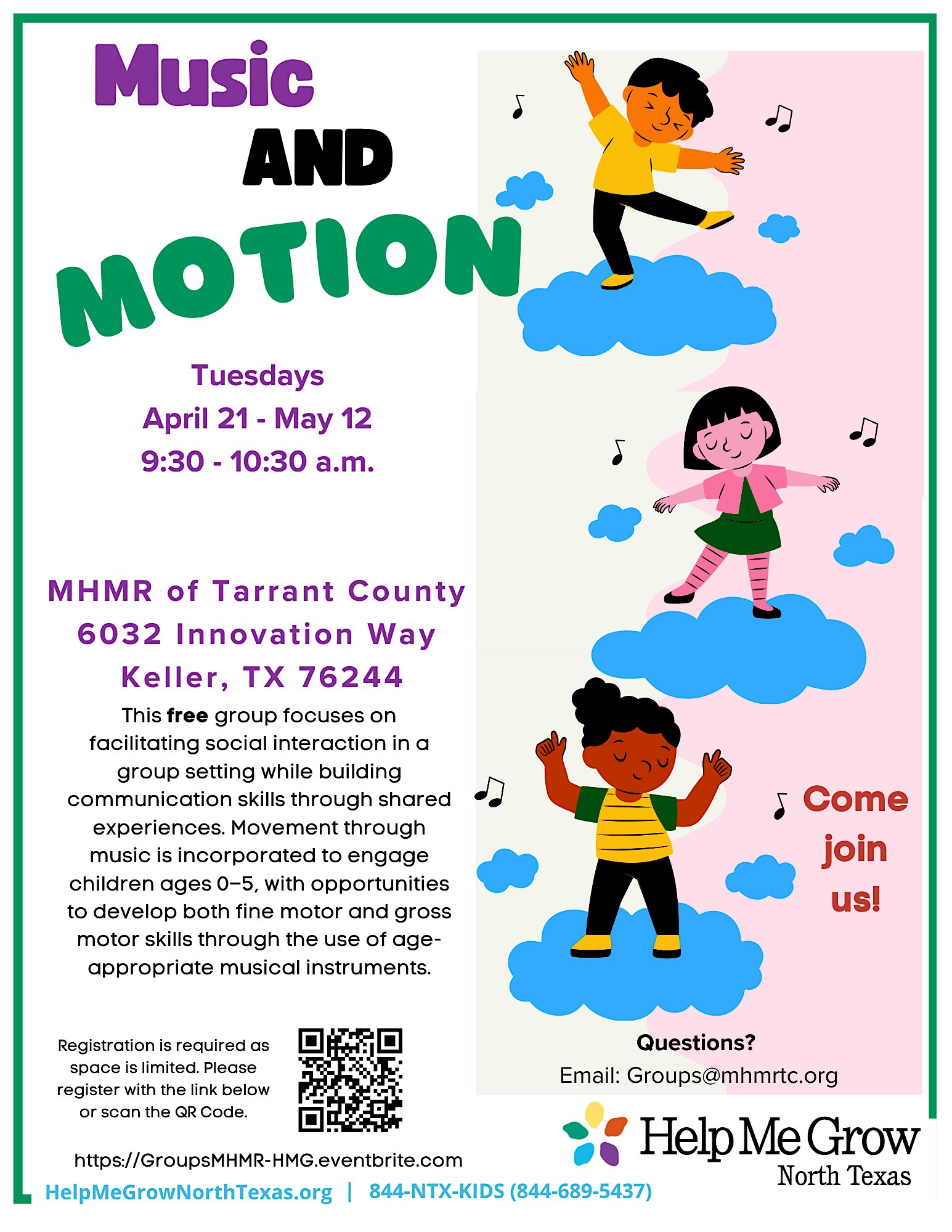 Face to Face Music and Motion – North Center April 21 @ 9:30 am - 10:30 am North Center - 6032 Innovation Way Keller, 76244 Innovation Way, Fort Worth, TX, United States Come Join us!