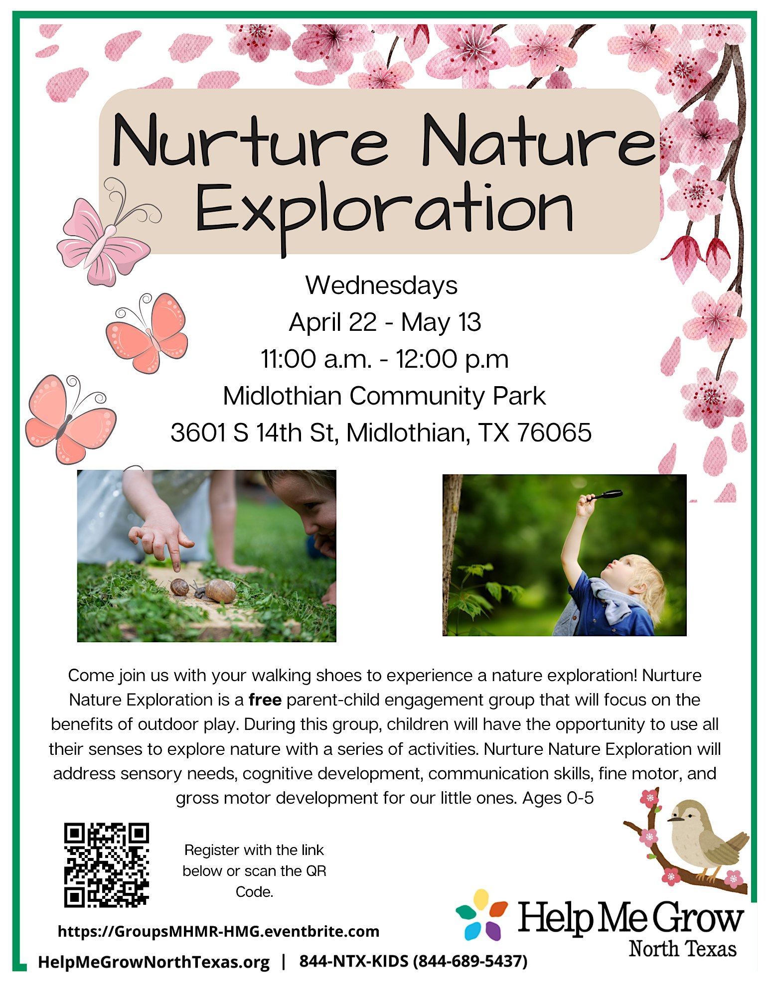 Face to Face: Nurture Nature Exploration-Midlothian April 22 @ 11:00 am - 12:00 pm Community Park 3601 South 14th Street, Midlothian, TX, United States Come join us!