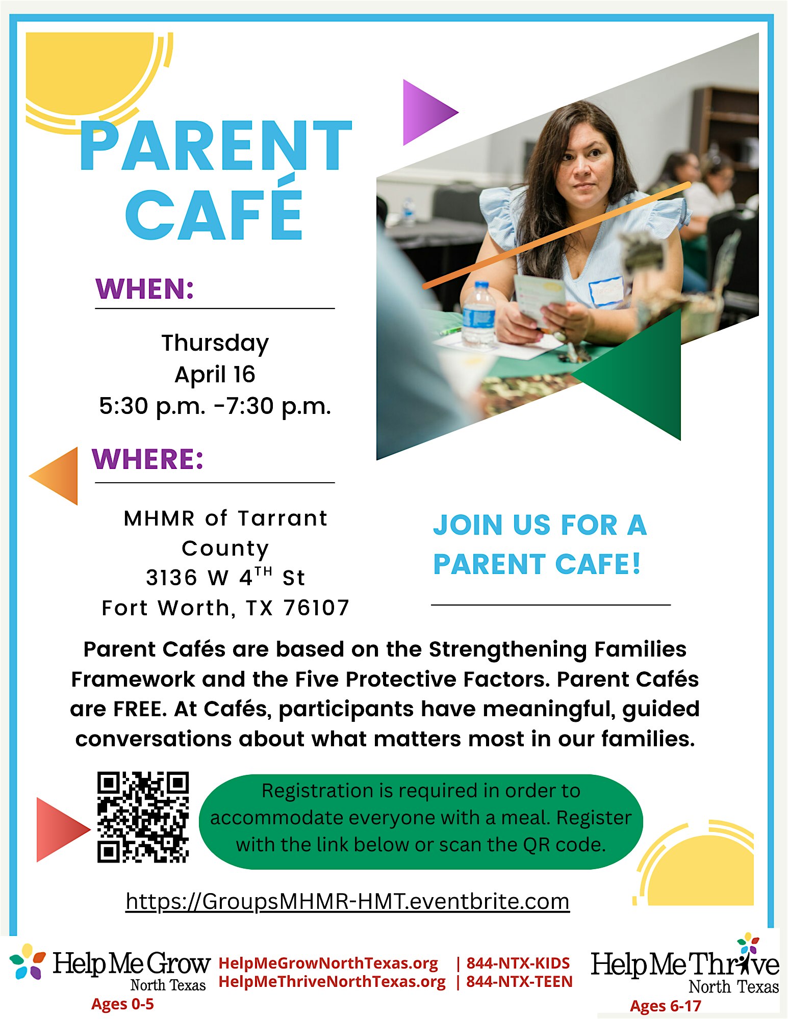 Face to Face Parent Cafe- Fort Worth April 16 @ 5:30 pm - 7:30 pm 3800 Hulen St 3800 Hulen Street, Fort Worth, TX, United States Come and join us!
